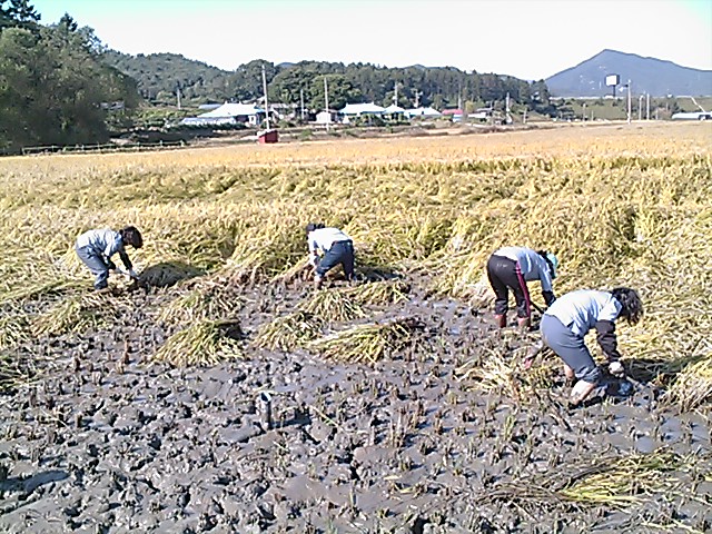 낫질은 처음인 우리들이 조심조심 그러나 발이 빠지고 넘어지고 엉덩방이 찧고 하하하