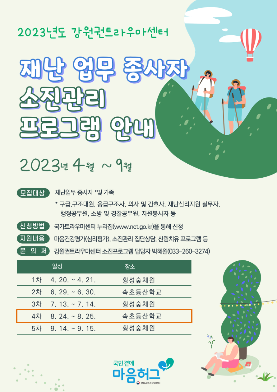 강원권트라우마센터 '재난종사자 소진관리프로그램' 안내