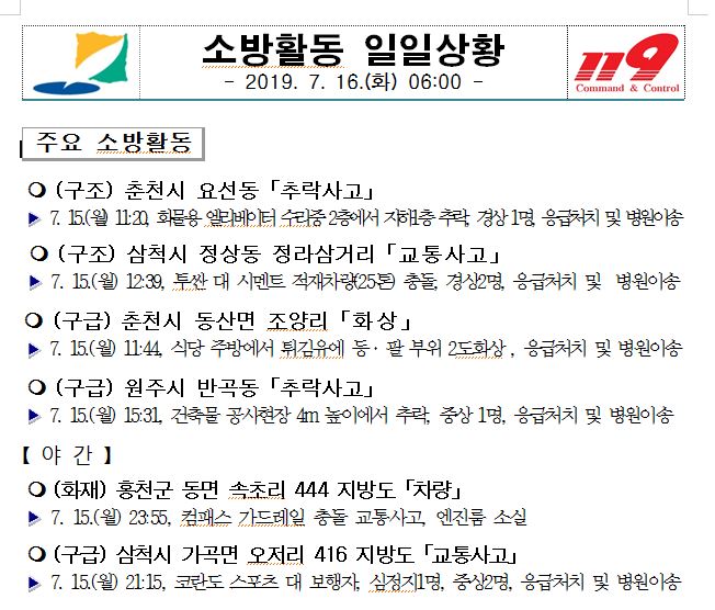 소방활동 일일상황(7. 16. 화) 06:00