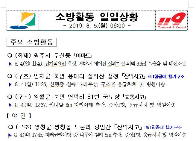 소방활동 일일상황(8. 5. 월) 06:00
