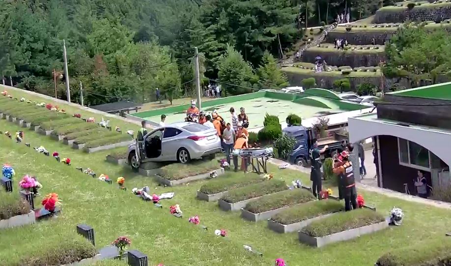 3. 내 용 : 아반테 승용차가 운전부주의로 성묘객 4명(중상3, 경상1)을 덮친 사고임.