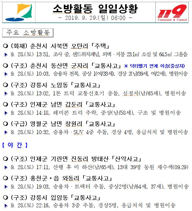 소방활동 일일상황(09.29. 일) 06:00