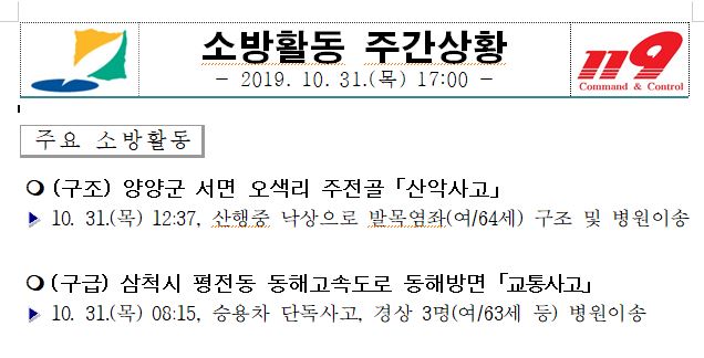 소방활동 주간상황(10.31. 목) 17:00