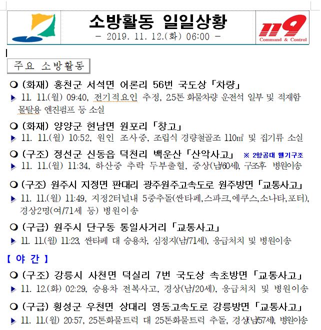 소방활동 일일상황 (11. 12. 화) 06:00