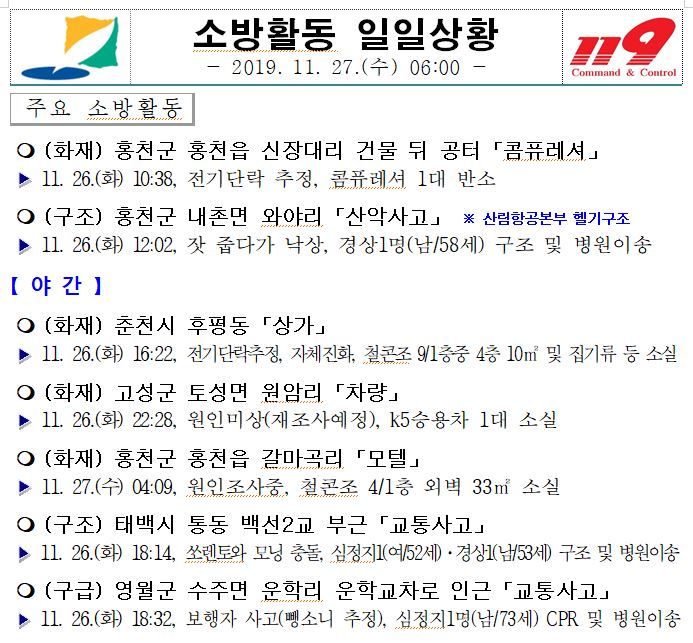 소방활동 일일상황 (11. 27. 수) 06:00