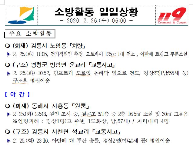 소방활동 일일상황 (2. 26. 수) 06:00