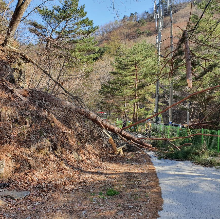 영월군 수주면 도원리 전선에 소나무 걸림 2.JPG