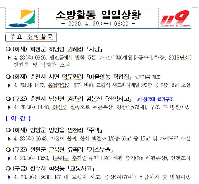 소방활동 일일상황 (4. 29. 수) 06:00