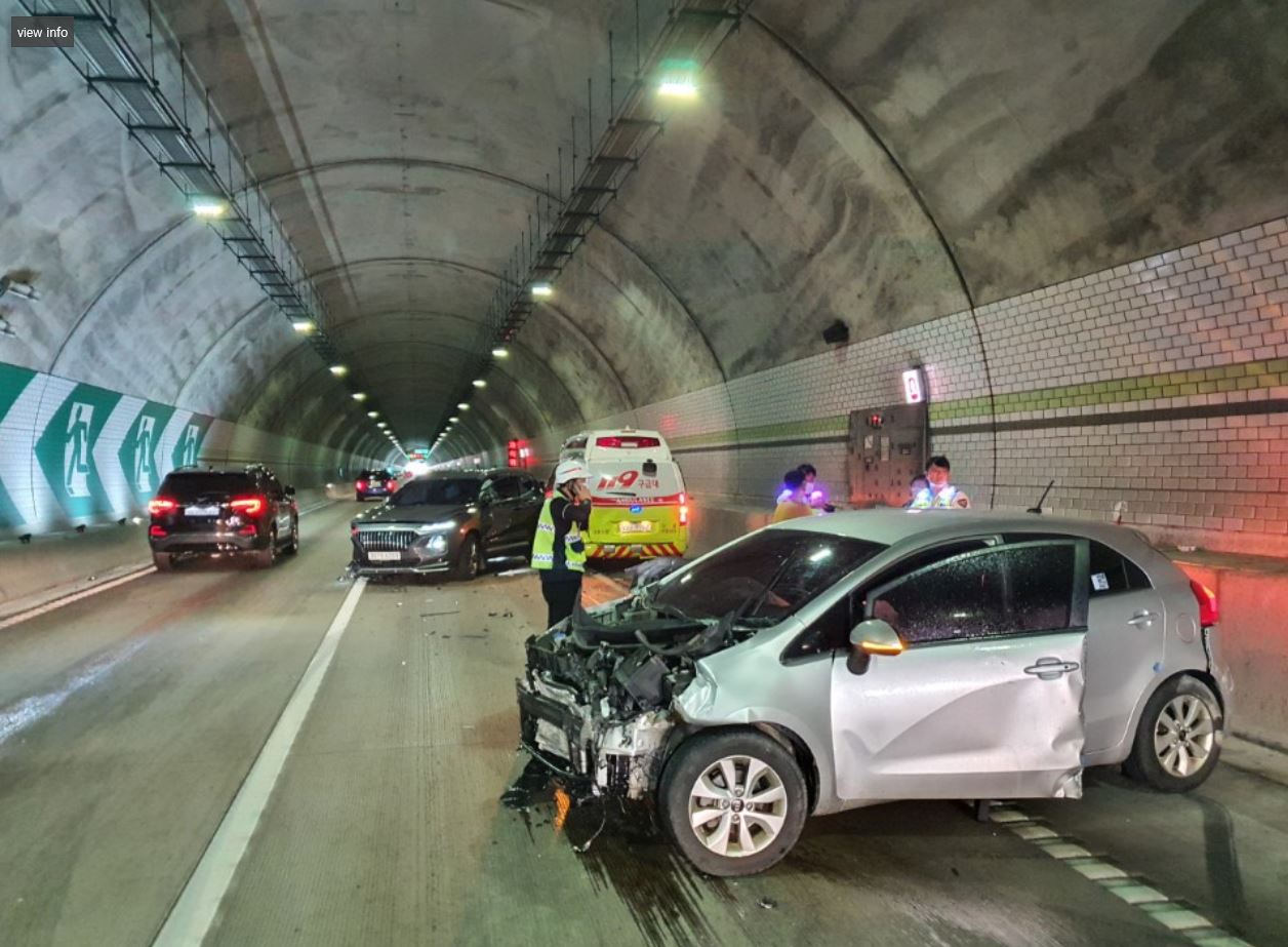 - 내용 : 최초 프라이드 해치백 차량이 터널벽을 들이받고 정차 중 119구급차가 프라이드 앞에 정차 후 구급대원1명이 하차하여 프라이드 차량으로 접근중 뒤이어 오던 싼타페 차량이 프라이드와 119구급차를 들이받은 사고로 추정됨