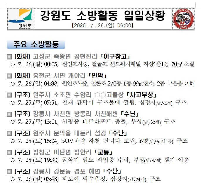 소방활동 일일상황 (7. 26. 일) 06:00