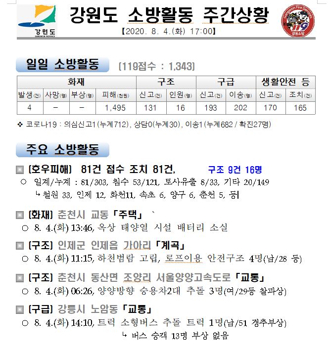 소방활동 주간상황(8. 4.화) 17:00