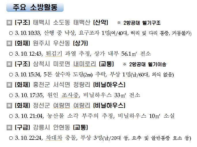 강원도 소방활동 일일상황 (3. 11. 목) 06:00