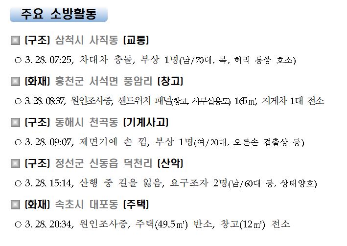 강원도 소방활동 일일상황(3. 29. 월) 06:00