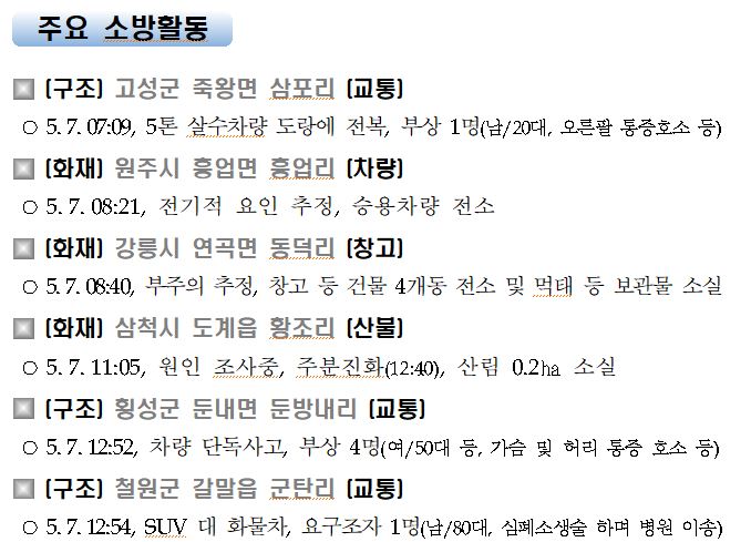 강원도 소방활동 주간상황(5. 7. 금) 17:00