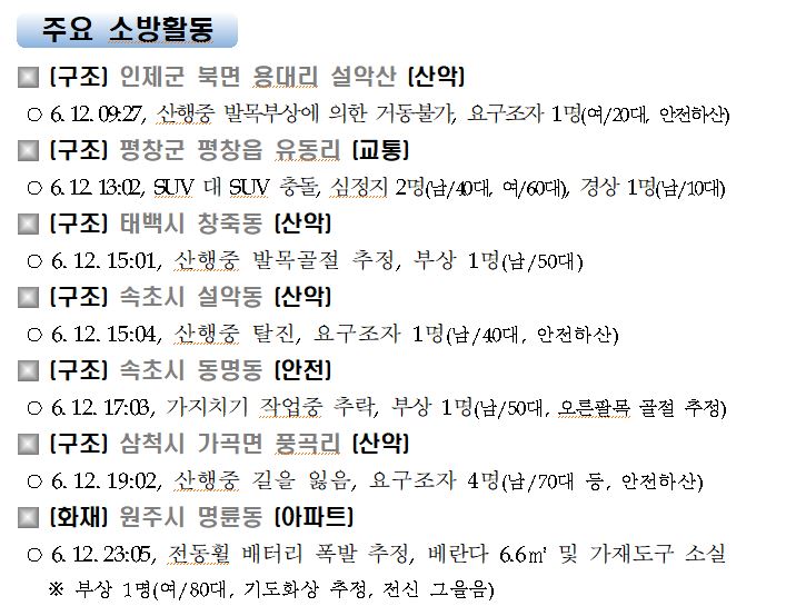 강원도 소방활동 일일상황 (6. 13. 일) 06:00