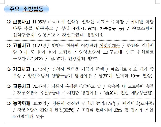 강원도 소방활동 일일상황 (8.19. 목) 06:00