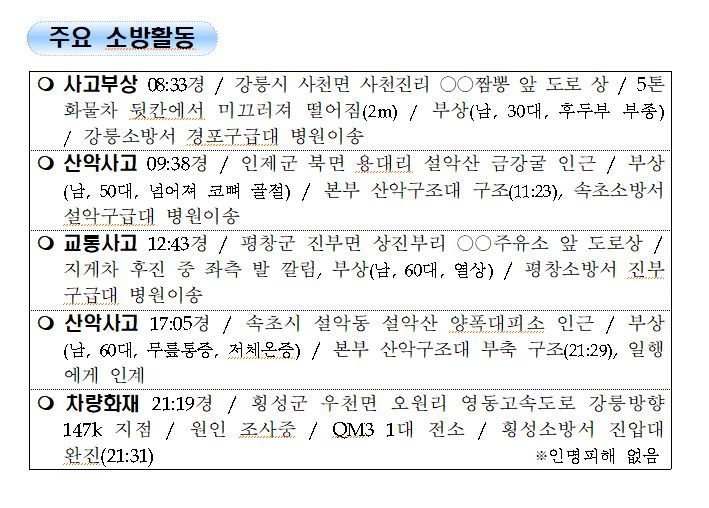 강원도 소방활동 일일상황 (9. 26. 일) 06:00