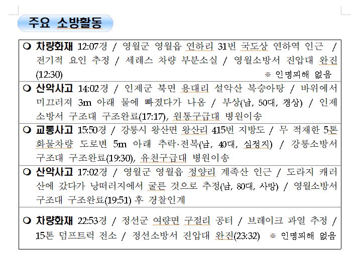 강원도 소방활동 일일상황 (10. 5. 화) 06:00