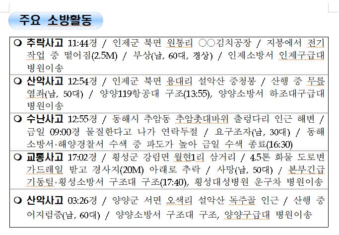 강원도 소방활동 일일상황 (10. 12. 화) 06:00