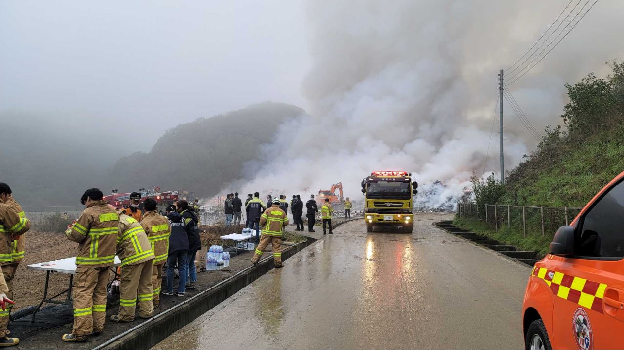 횡성군 쓰레기 매립장 화재 사진