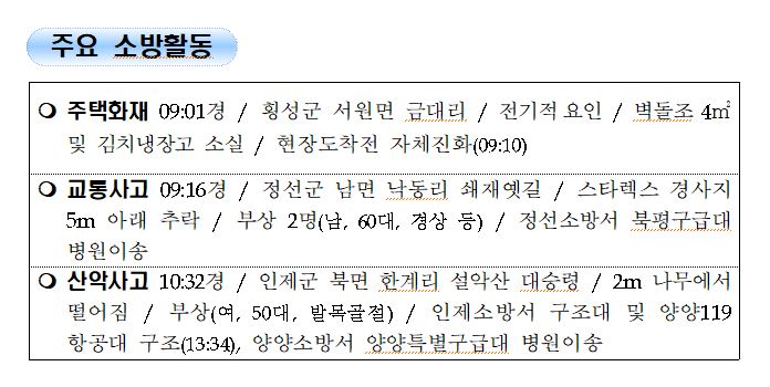 강원도 소방활동 주간상황 (10. 20. 화) 17:00