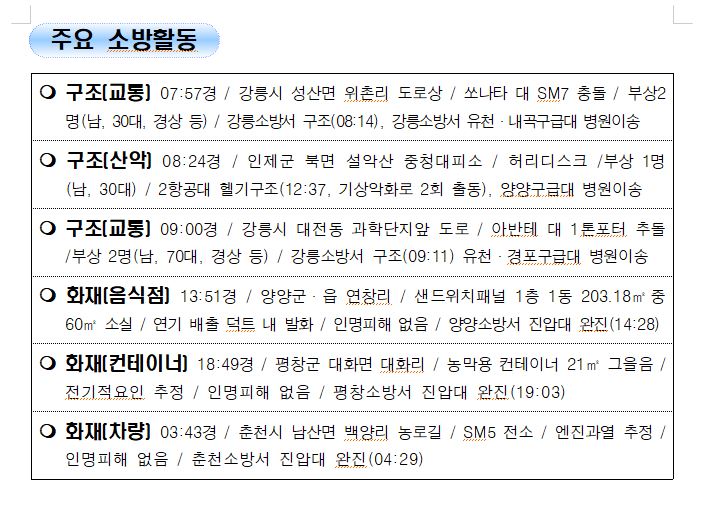강원도 소방활동 일일상황 (11. 02. 화) 06:00