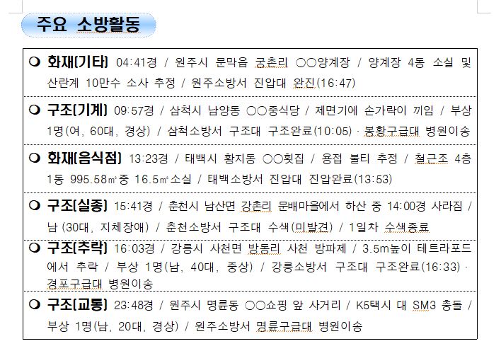 강원도 소방활동 일일상황 (11. 18. 목) 06:00