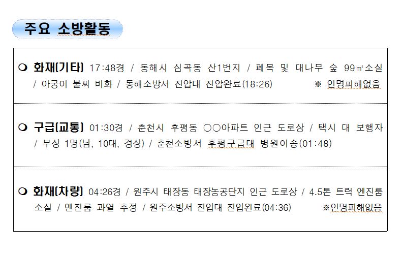 강원도 소방활동 일일상황 (11. 27. 토) 06:00