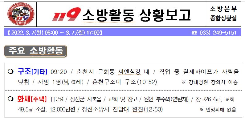 119 소방활동 상황보고(3. 8. 월) 17:00