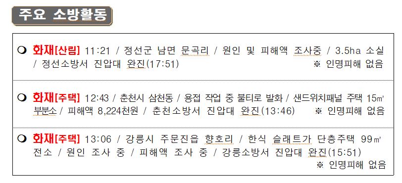 119 소방활동 상황보고(4. 11. 월) 17:00