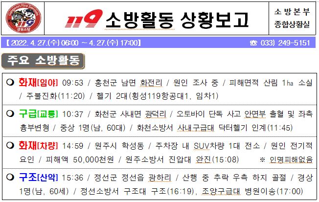 119 소방활동 상황보고(4. 27. 수) 17:00