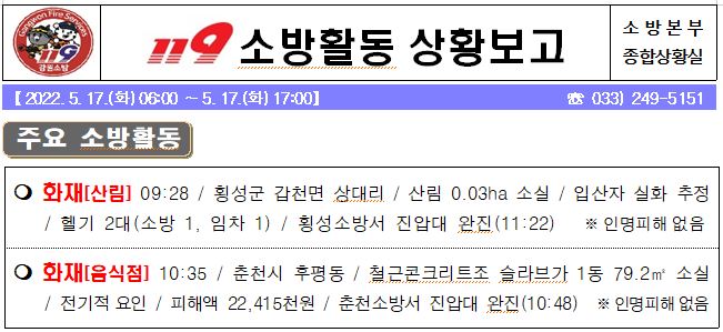 119 소방활동 상황보고(5. 17. 화) 17:00