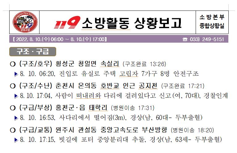 119 소방활동 상황보고(8. 10. 수) 17:00