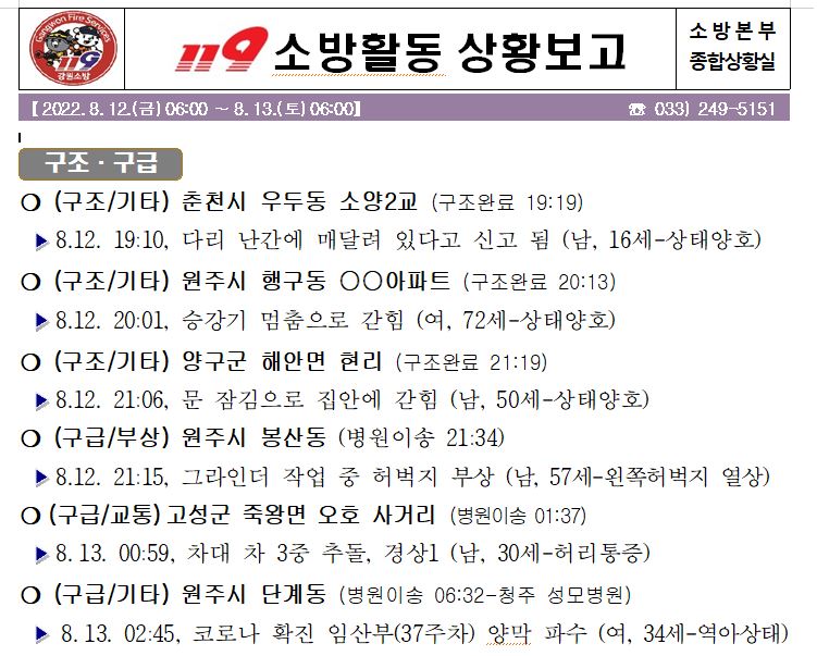 119 소방활동 상황보고(8. 13. 토) 06:00