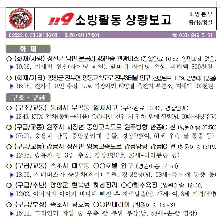 119 소방활동 상황보고(08. 28. 일) 17:00