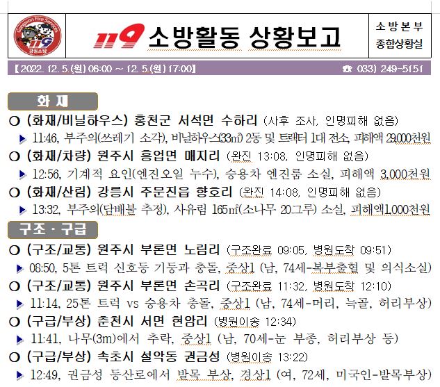 119 소방활동 상황보고(12. 05. 월) 17:00