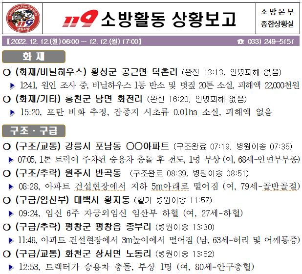 119 소방활동 상황보고(12. 12. 월) 17:00