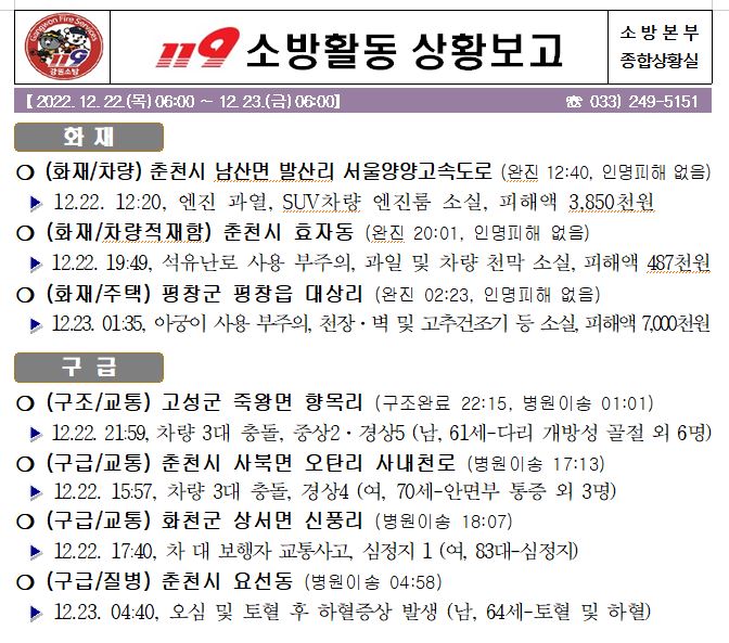 119 소방활동 상황보고(12. 23. 금) 06:00