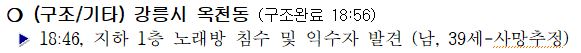 강릉시 지하1층 노래방 침수 및 익사사고 발생