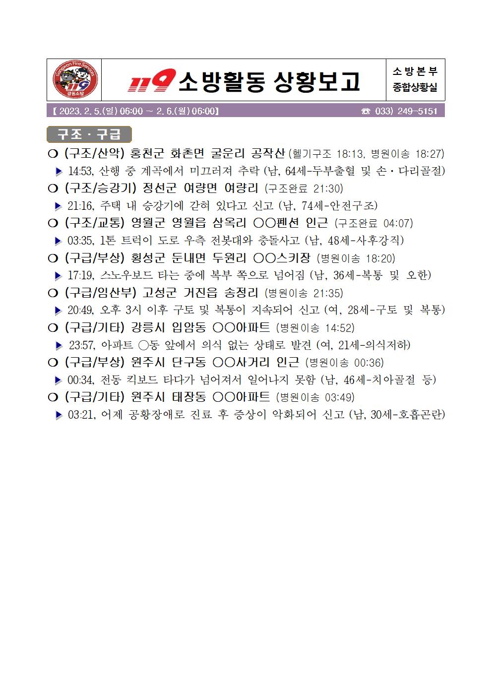 119 소방활동 상황보고(2. 6. 월) 06:00