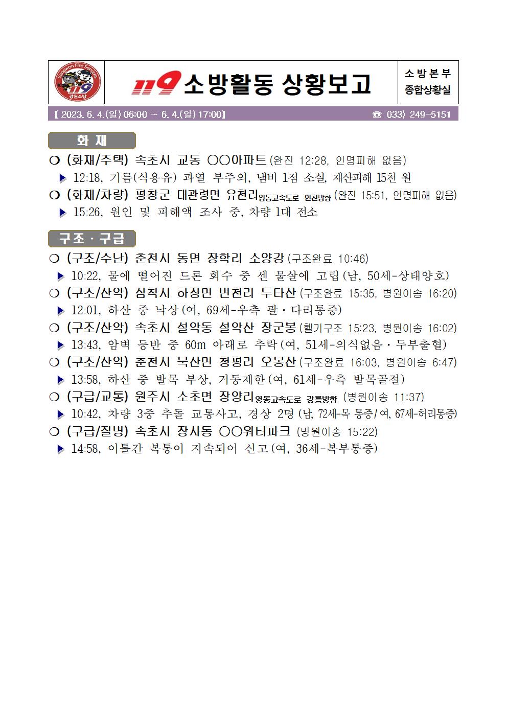 119 소방활동 일일상황보고(6. 4.일) 17:00