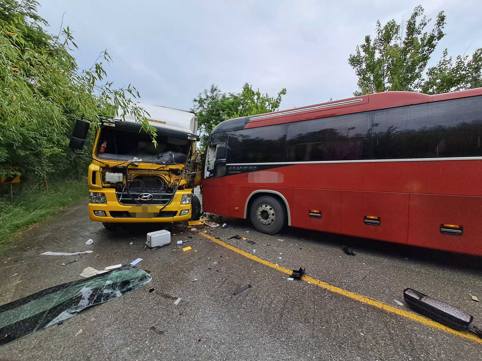 강릉 관광버스 대 화물차 충돌 교통사고