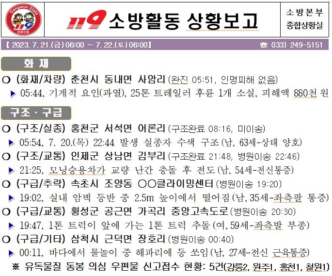 119 소방활동 상황보고(7. 22. 토) 06:00