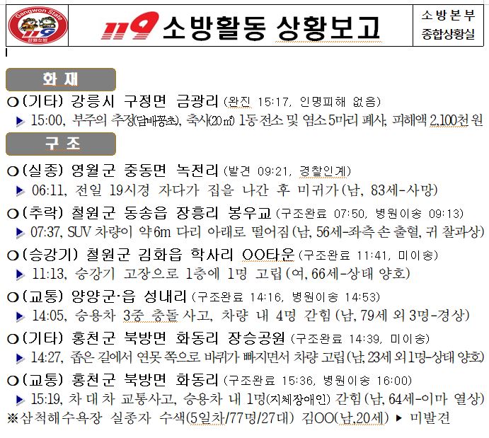 119 소방활동 일일상황보고(10.11.수) 06:00
