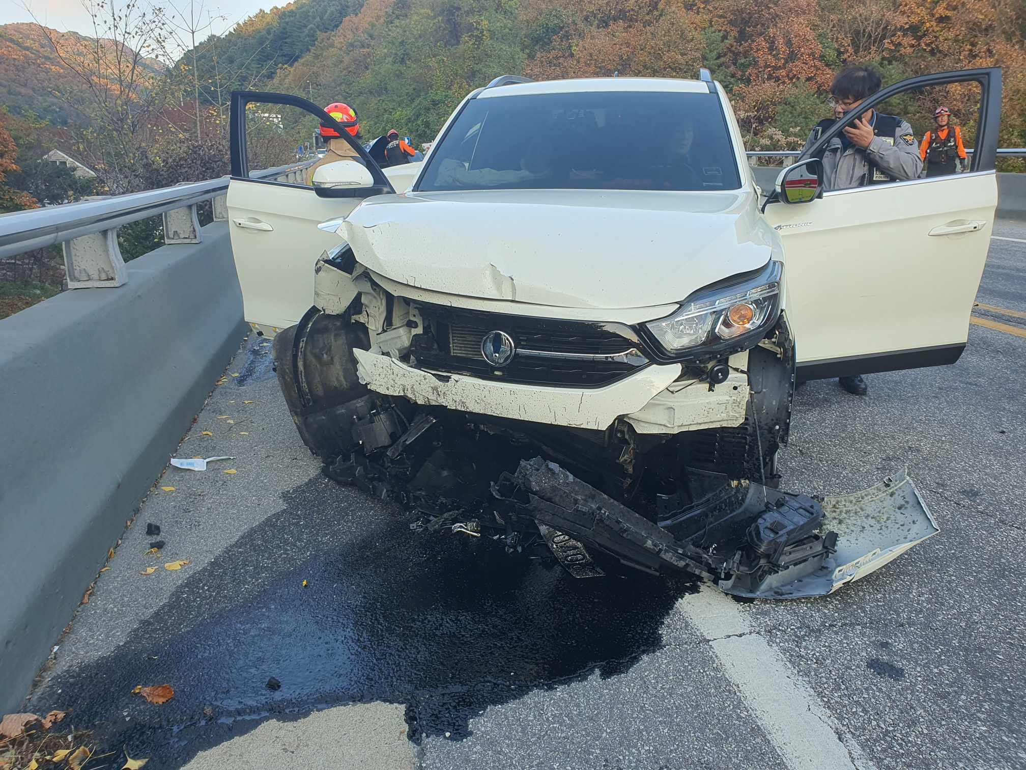 방향으로 주행 중이던 렉스턴(화천→춘천)과 K5(춘천→화천) 차량이 정면 충돌