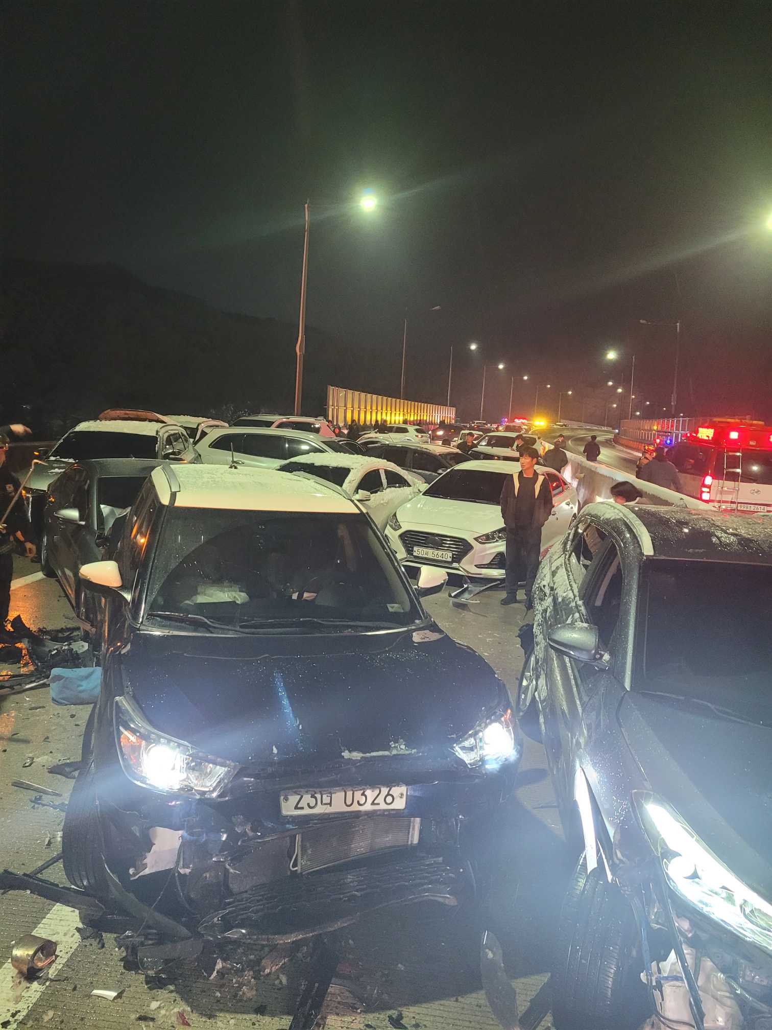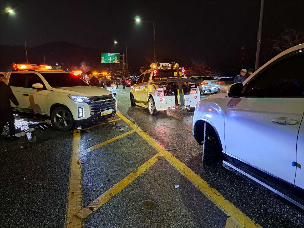 원주 호저면 만종교차로 50중 추돌사고 관련 사진 3점