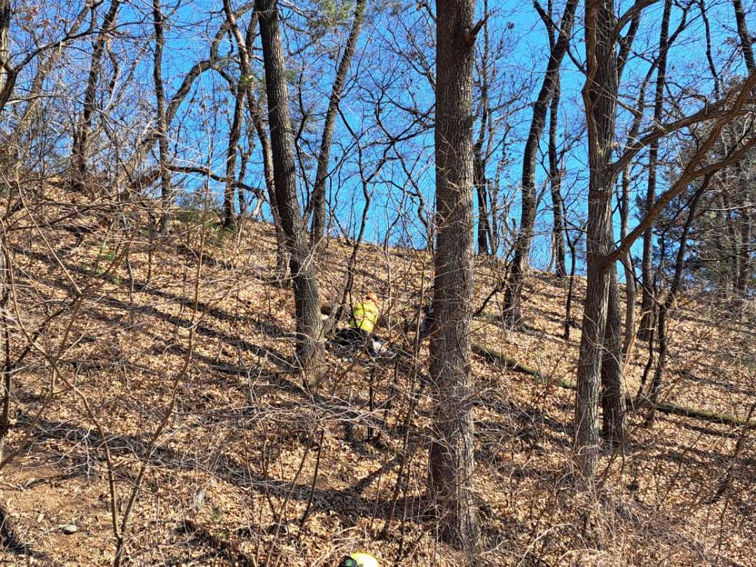 홍천 화촌면 동홍천IC 인근 작은 동산 벌목 작업자