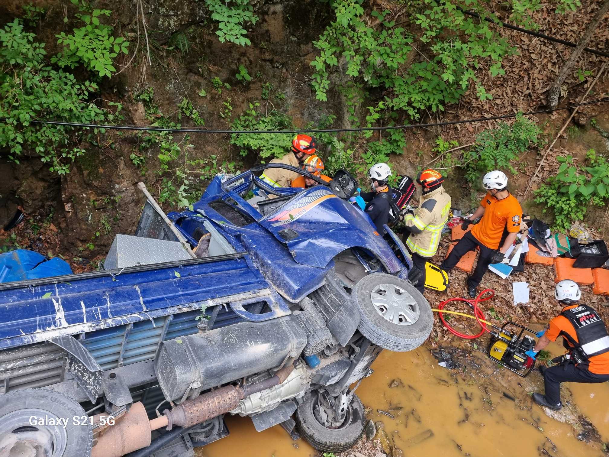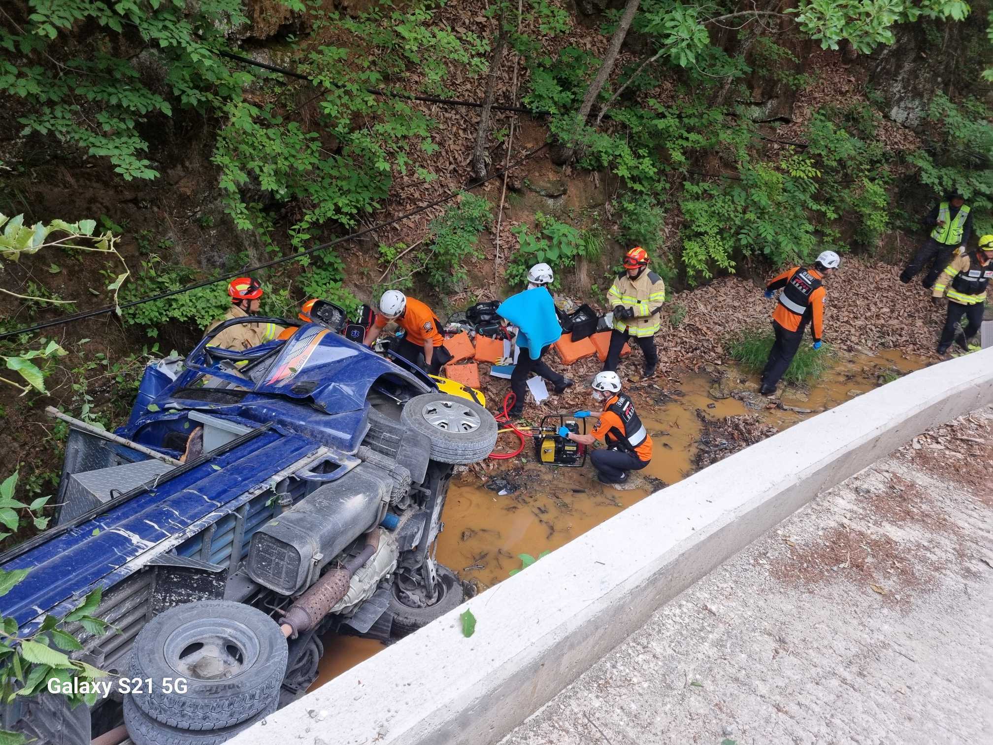 (교통사고) 삼척 도계읍 발이리 1톤 포터 낭떠러지 추락 전도
