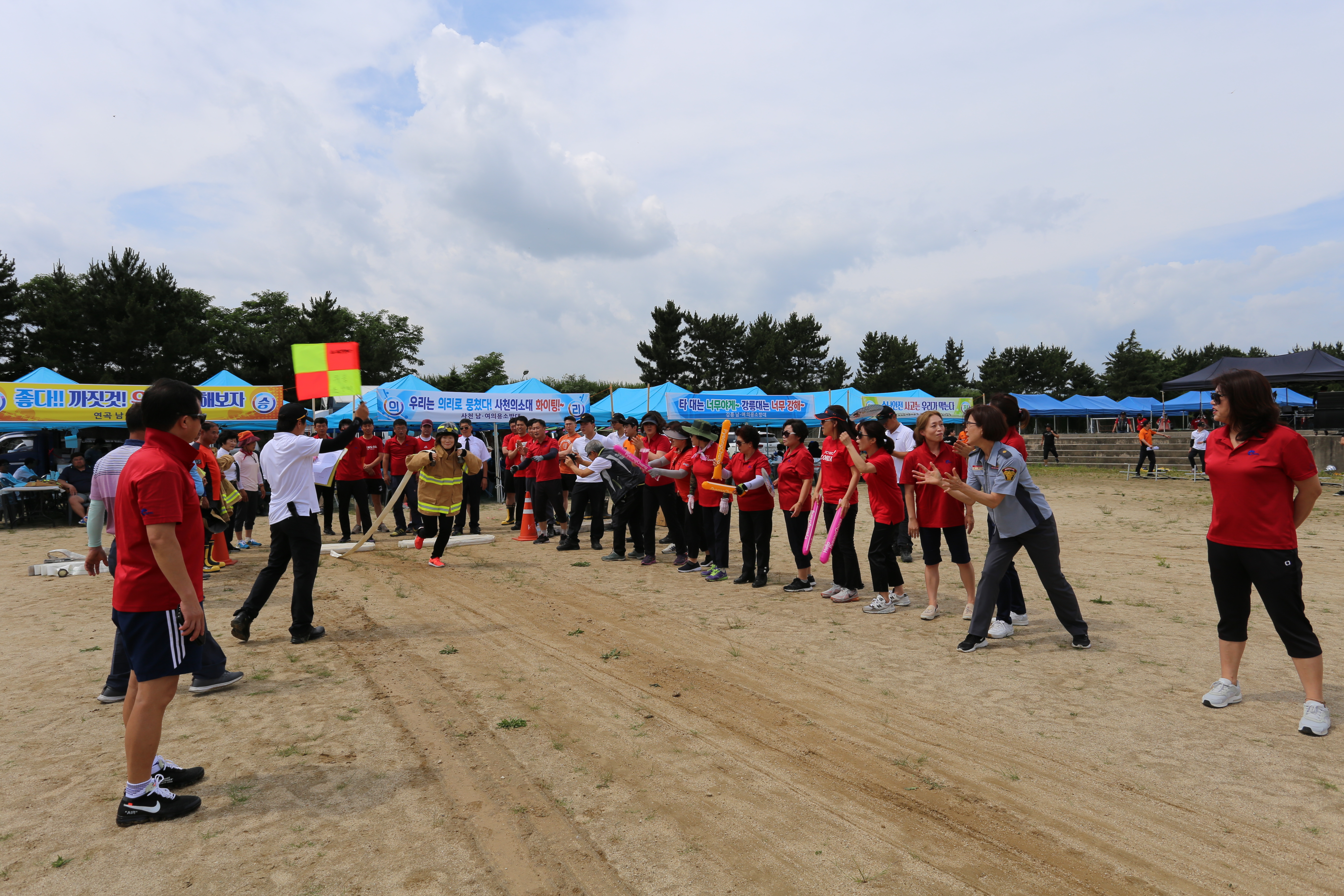 이날 대회에 선수로 출전한 의용소방대원들은 소방호스 끌기, 개인장비장착 릴레이 등 경연종목을 통해 평소 교육훈련으로 갈고 닦은 기량을 마음껏 선보였으며 명량계주와 장기자랑 등 각종 이벤트도 진행됐다.