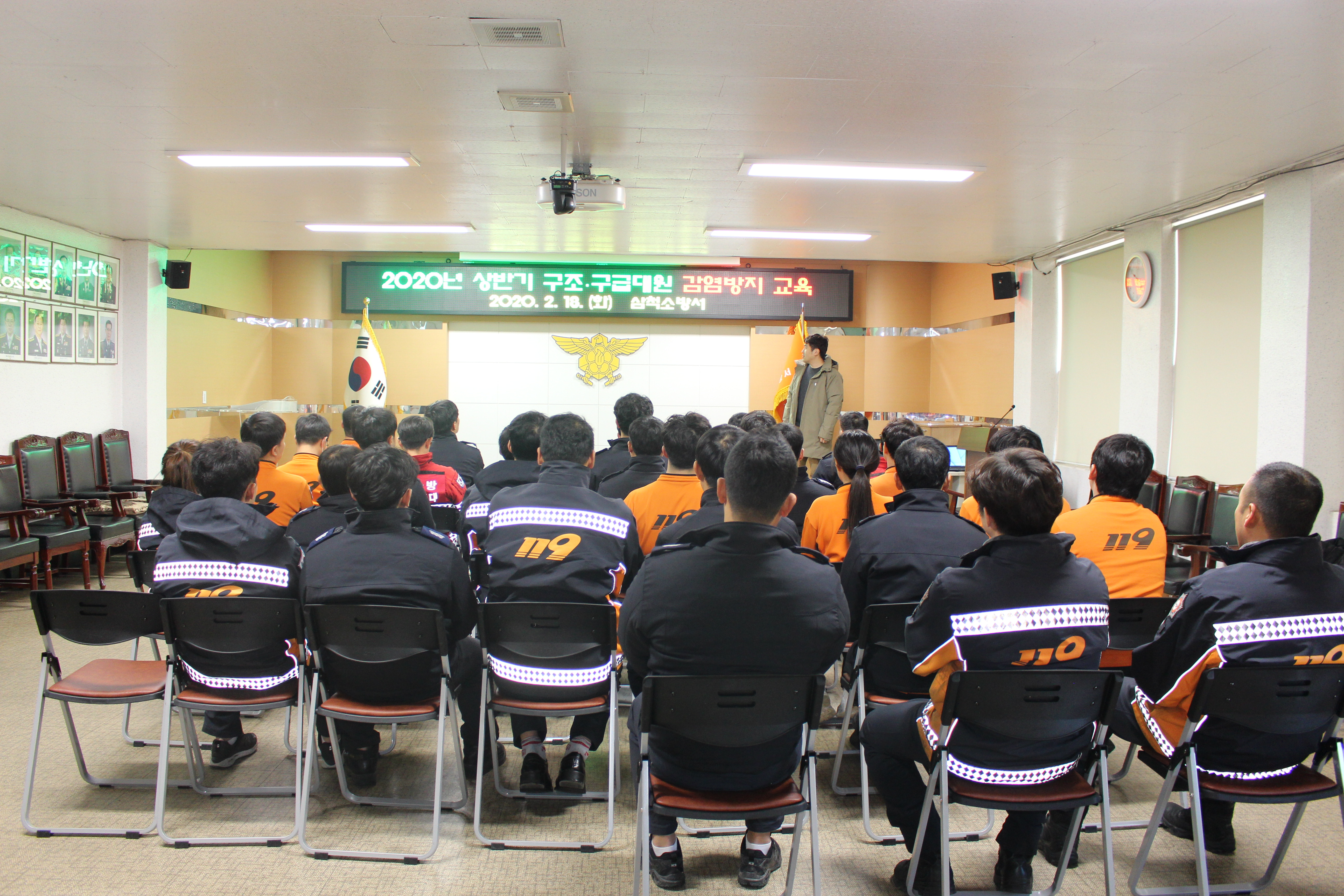 또한 구조·구급대원 감염방지교육에는 40여명이 참석해 코로나-19 예방대응 매뉴얼 및 (의심증)환자 접촉 후 사후관리, 코로나-19로 인한 현장 구조·구급대원 불안요소 해소를 위한 교육 및 질의응답 형식 등으로 진행됐다.